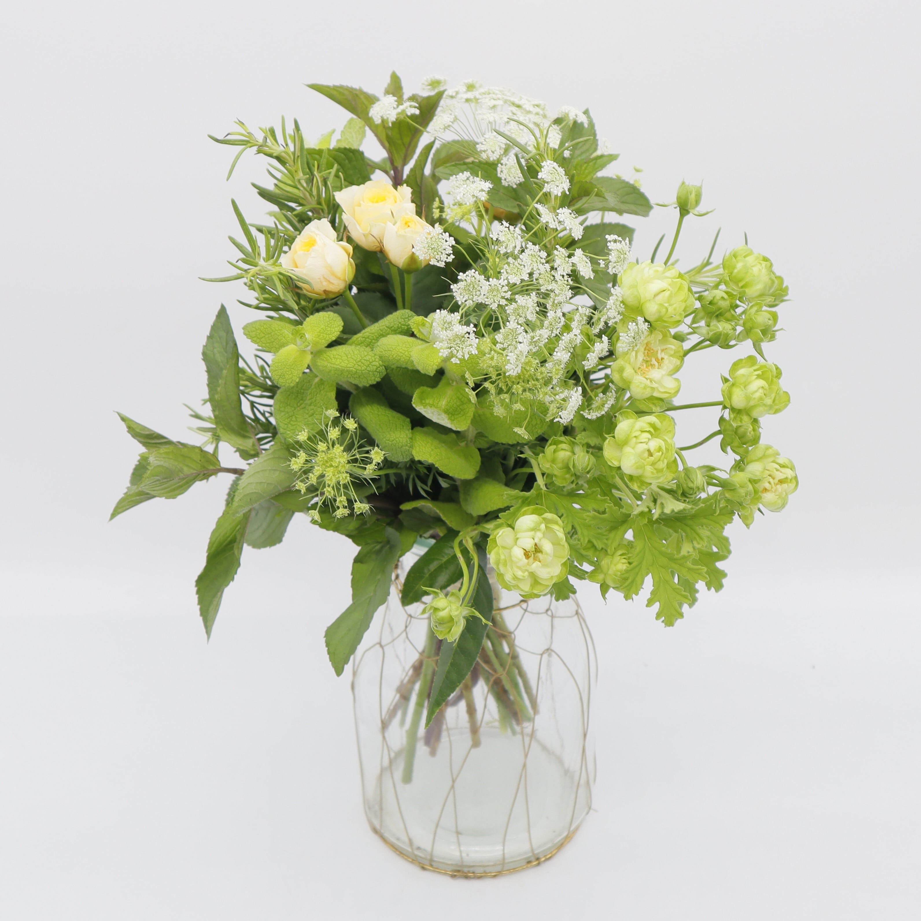 香り豊かなフレッシュハーブ★グリーンブーケ〈いろいろハーブMIX&スプレーバラ〉〈数量限定〉