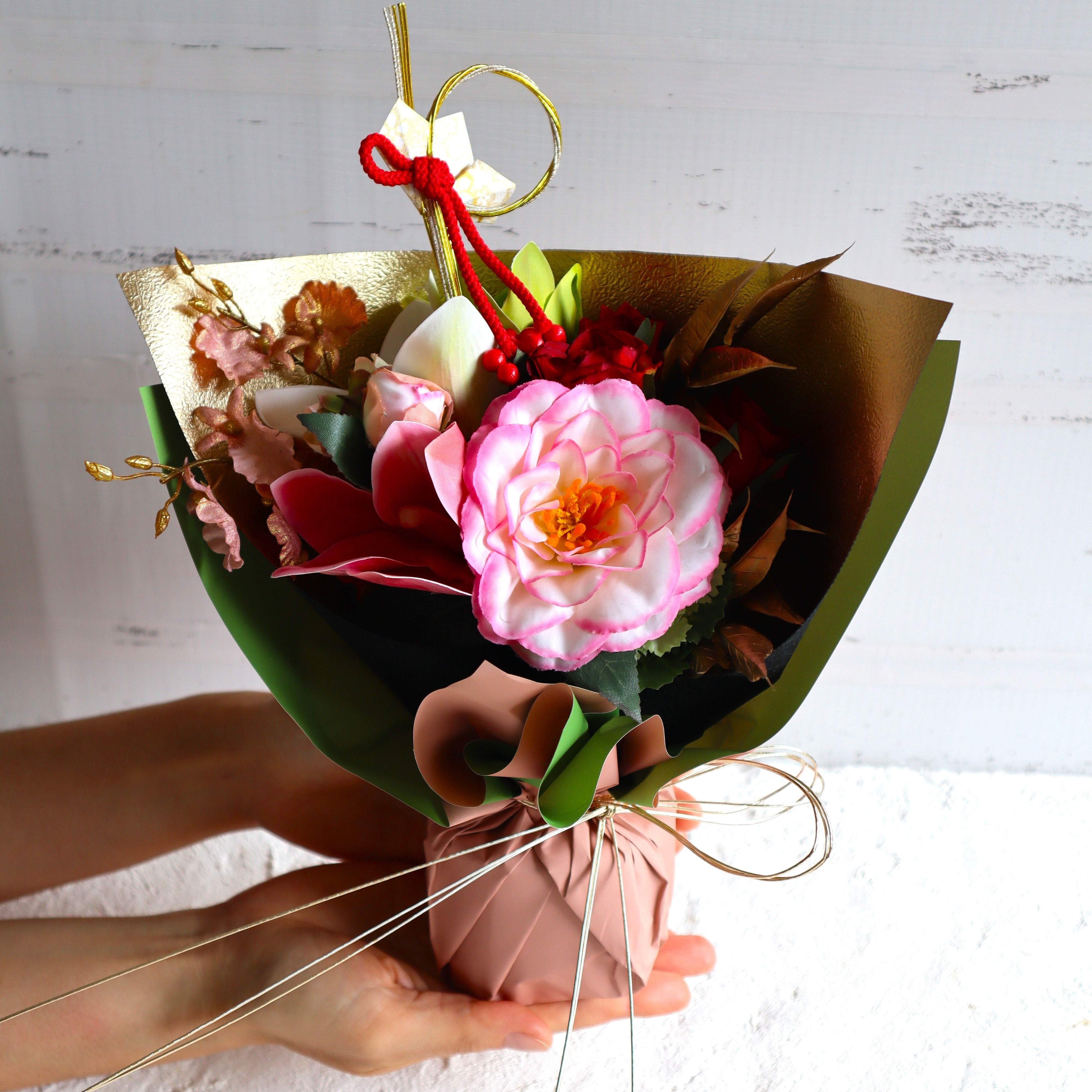 〈送料込み〉2026年迎春 アートフラワー☆スタンディングブーケ ピンク