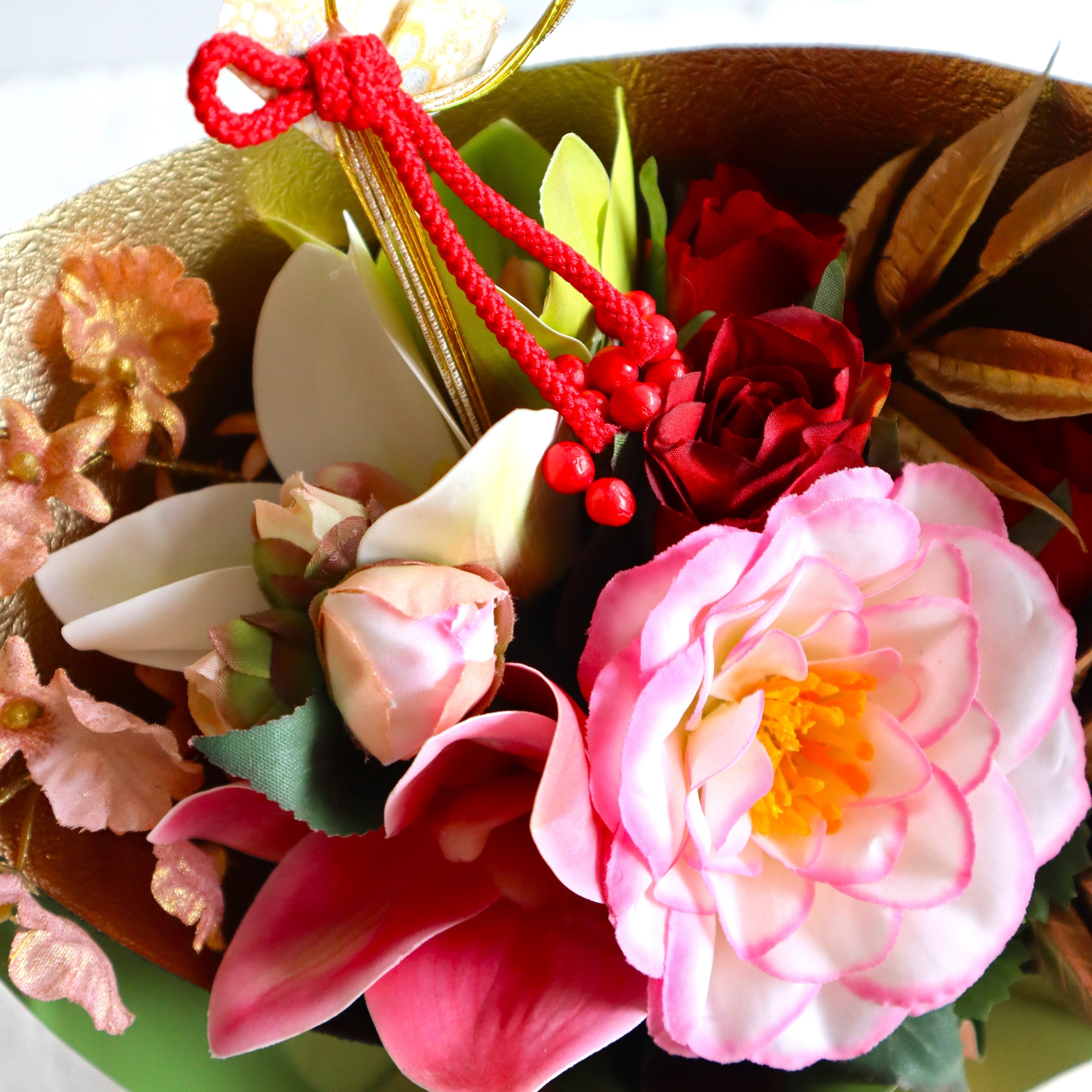 ◆お正月用 アートフラワー(造花)スタンディングブーケ ピンク系