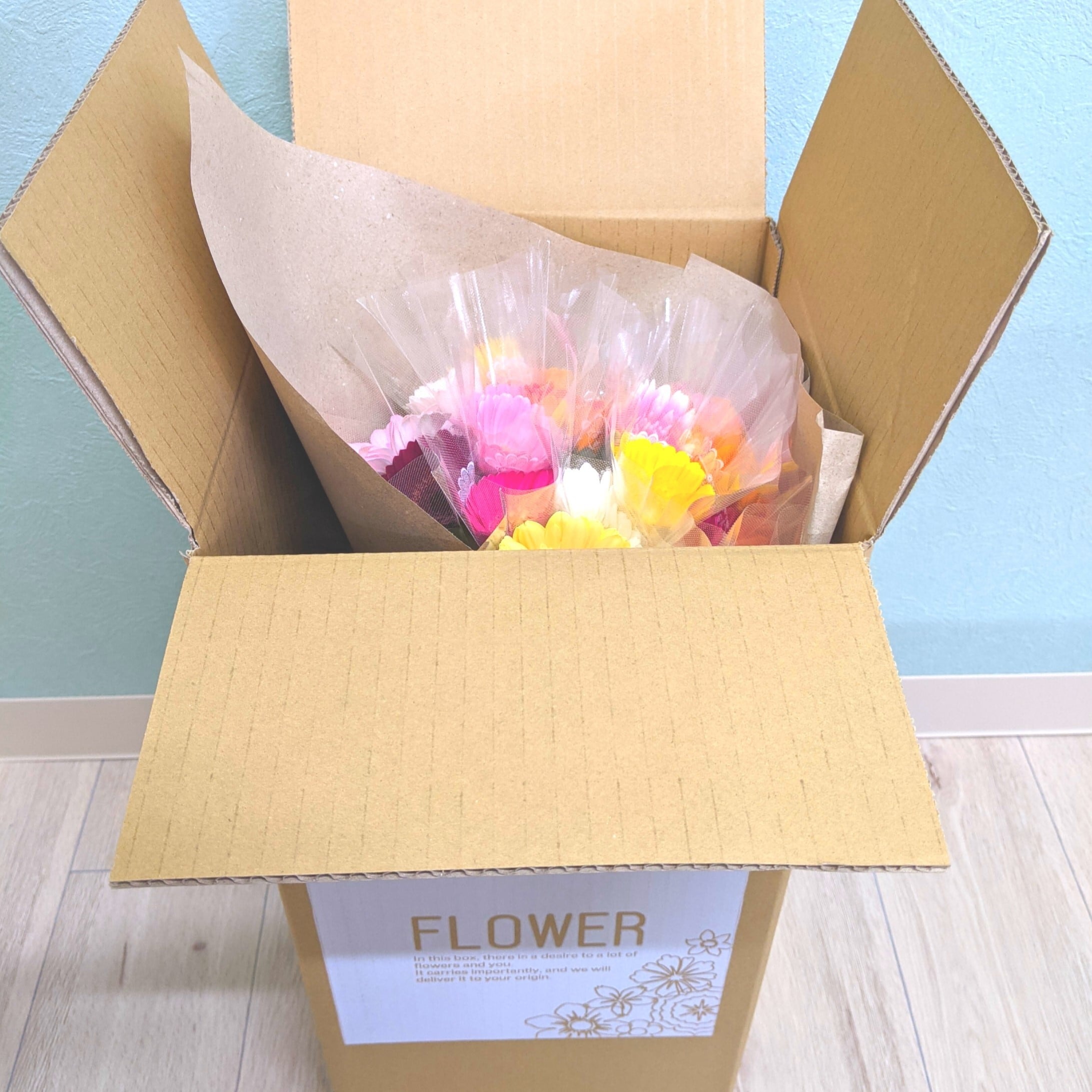 ◎ お花を包んでいる包装紙を外すときに、お花がぽろっと折れてしまうことがありますので、優しく丁寧に取り扱ってください。
