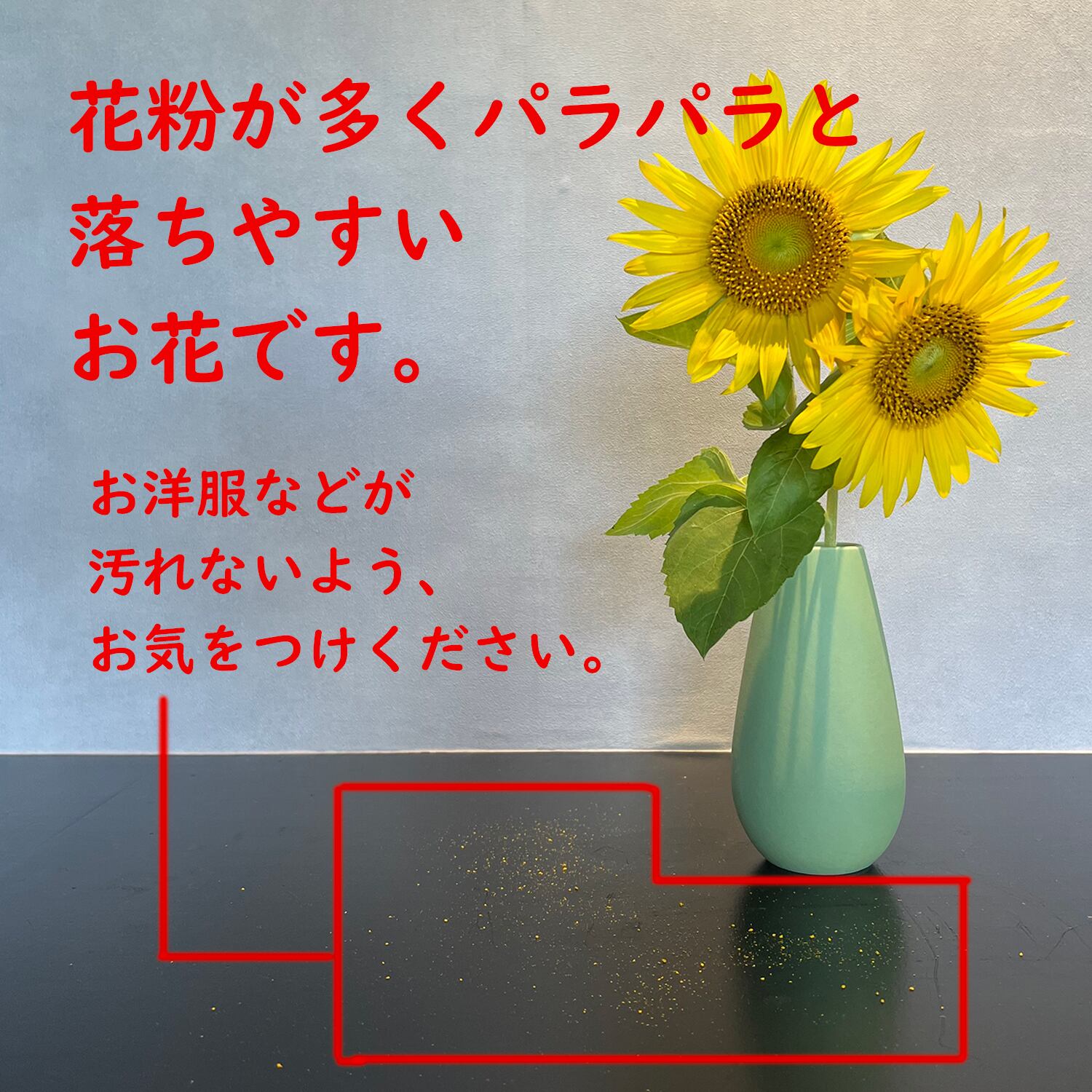 花粉が付かないよう、ご注意ください。